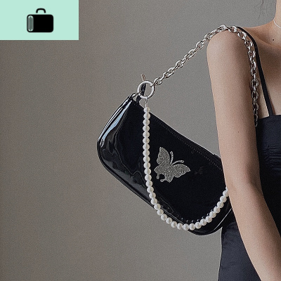 个性蝴蝶腋下包女2020新款珍珠链条单肩斜挎包手提中古包潮NEW LAKE 酷黑送长肩带可斜挎女士单肩包