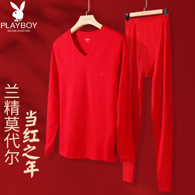 花花公子莫代尔秋衣秋裤套装男大红色保暖内衣本命年薄款蛇年结婚