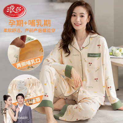月子服春秋季产后纯棉孕妇哺乳睡衣长袖薄款产妇喂奶家居服