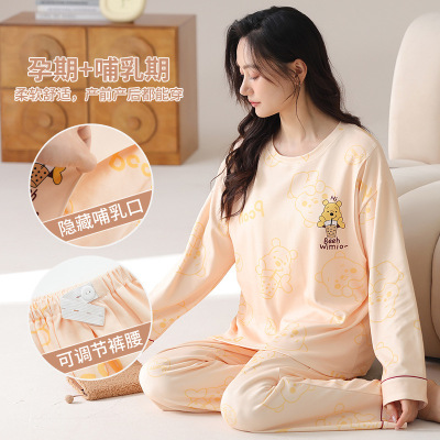 秋冬季仿棉女睡衣韩版卡通宽松加大码孕妇哺乳期月子服家居服套装