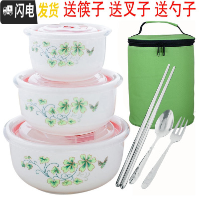 三维工匠三层不锈钢保温饭盒多层保温桶真空保温提锅大容量饭桶便当快餐盒 青叶蝴蝶三层饭盒+保温袋+筷叉勺