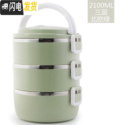 三维工匠保饭盒保温网红12小时24上班族双层3三层四层多层1人学生便携超长 北欧绿三层