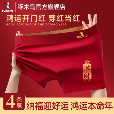 啄木鸟马年本命年高端男士内裤男款抗菌大红色四角短裤头结婚礼物