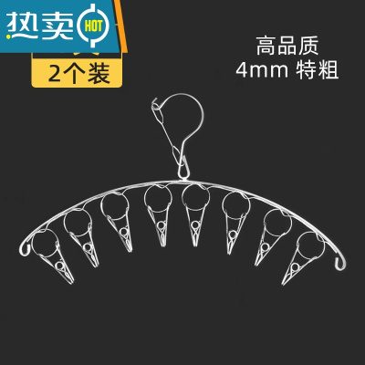 敬平夹子晾衣夹晒袜子器不锈钢袜架多夹子家用多功能内衣内裤夹 8夹[2个装]防风特粗4mm