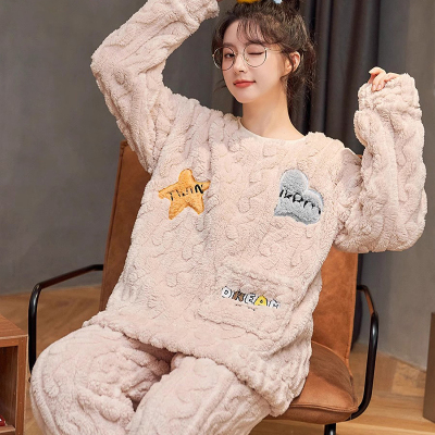 浪莎珊瑚绒睡衣女士秋冬季新款可爱长袖加厚保暖套装可外穿家居服
