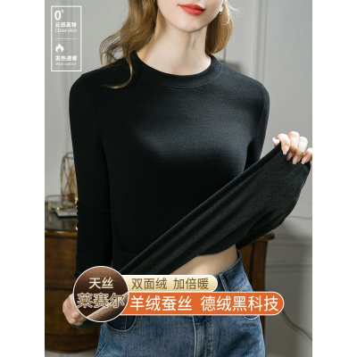 蚕丝德绒圆领打底衫羊绒秋衣女内衣加绒发热保暖美肤女士上衣秋冬