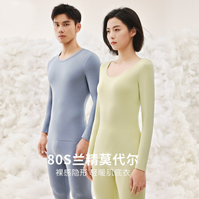 80兰精莫代尔情侣保暖内衣女圆领修身男士秋衣秋裤套装无痕保暖衣