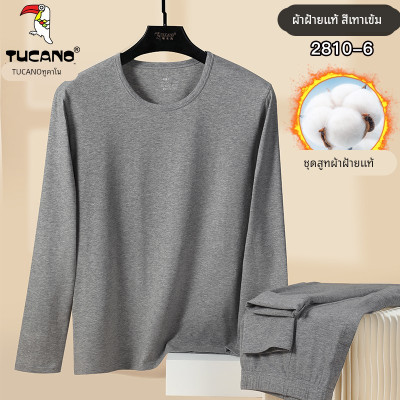 啄木鸟纯棉保暖内衣套装男秋冬薄款圆领防寒秋衣秋裤打底毛衫线衣