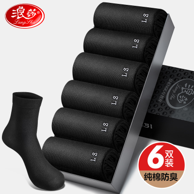 浪莎袜子男中筒秋季纯棉防臭吸汗黑色商务男袜全棉袜男士短袜男款