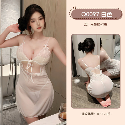 九里晴川情趣内衣性感睡裙激情诱惑性感透视睡衣免脱深V薄纱睡衣 九里晴川Q0097[系带连衣裙] 均码