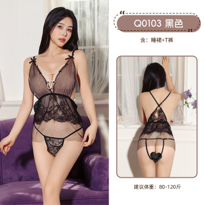 九里晴川情趣内衣纯欲诱惑深V开裆免脱小胸床性感网纱睡裙 九里晴川Q0103[蕾丝吊带裙-黑] 均码