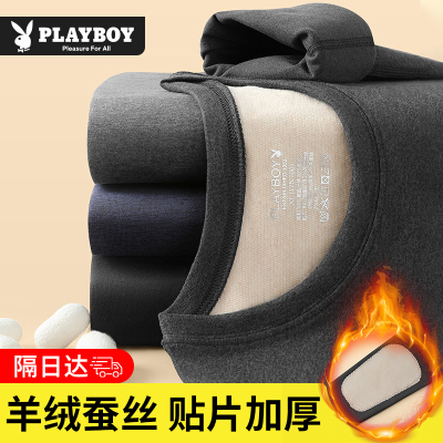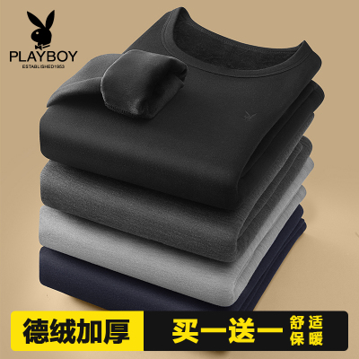 花花公子德绒保暖内衣男士加绒加厚冬季防寒发热羊毛秋衣秋裤套装