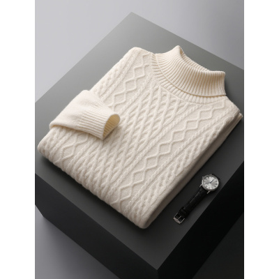 重工加厚羊毛衫男高翻领套头针织打底毛衣纯色宽松绞花高领毛衫