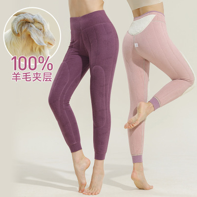 策霸CEBA100%羊毛绗缝保暖裤女加绒加厚-20度冬季护膝护腰棉裤女东北过冬