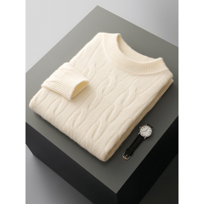 秋冬款男半高圆领100全羊毛衫扭花七针双股加厚毛衣针织打底毛衫
