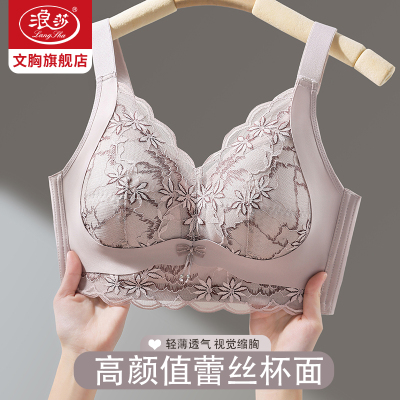 浪莎内衣女士文胸无钢圈聚拢收副乳防下垂美胸神器性感蕾丝大码胸罩