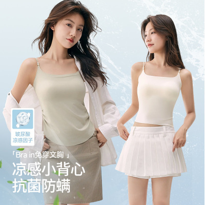 10A玻尿酸冰丝无痕吊带美背一体带垫背心固定杯免穿文胸吊带