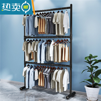 敬平双层晾衣架落地卧室内衣帽架简易折叠挂衣架不占地家用晒衣收纳架 [三层]黑色长100高220