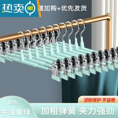 敬平内衣架带夹子家用挂衣晒内衣内裤专用裤架晾衣架晾晒器裤夹 加厚无痕浸胶?生锈退款?牛油果绿 10个衣夹