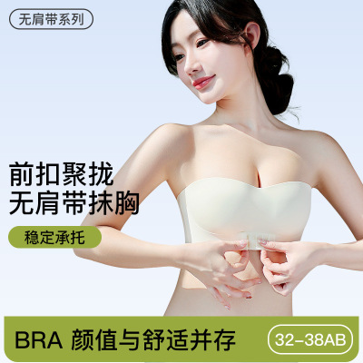 无肩带内衣防滑小胸聚拢隐形抹胸式前扣无痕无钢圈美背一体式文胸