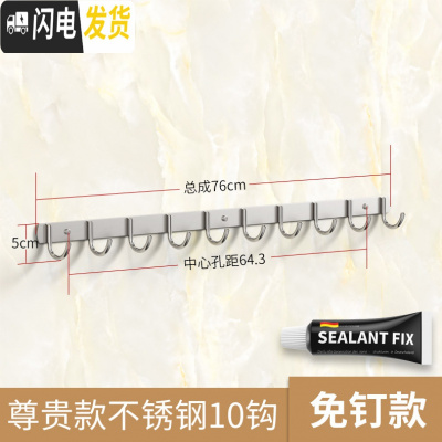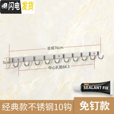 三维工匠卧室衣帽衣服架不锈钢毛巾挂钩壁挂墙壁打孔固定强力粘胶厨房排钩 粘钉两用,经典款10钩(同款)