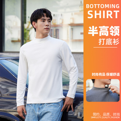 半高小圆领保暖内衣男上衣内搭可外穿保暖打底秋衣长袖发热保暖衣