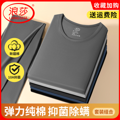 浪莎男士保暖内衣超薄款纯棉秋衣卫生裤套装高弹莱卡棉男生卫生衣卫生裤