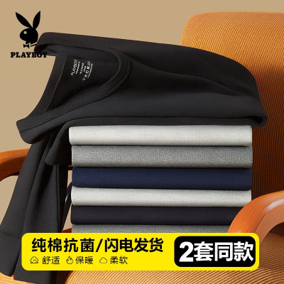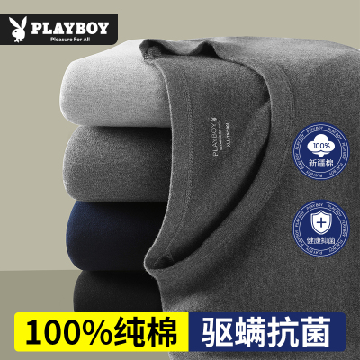 花花公子秋衣秋裤男士纯棉毛衫线衣线裤全棉薄款保暖内衣套装冬季