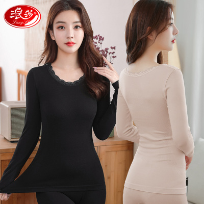 浪莎秋衣秋裤女士保暖内衣套装美体衣服打底棉毛衫红线衣线裤薄款