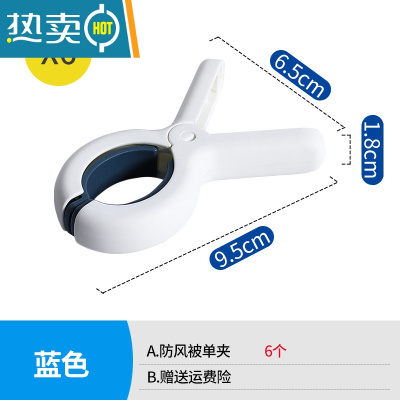 敬平大号防风晾衣夹家用晾晒棉被子衣服内衣袜强力固定器塑料大被夹子 大号蓝色[6个装]