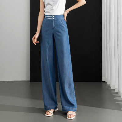 夏牛仔裤女天丝冰丝宽松休闲裤长裤大码女式松紧腰阔腿裤