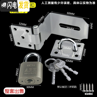 三维工匠不锈钢搭扣锁扣老式鼻子木明装插销90度直角锁牌扣栓锁 整套带挂锁:90度304A门搭(4寸)+30MM房门安全扣