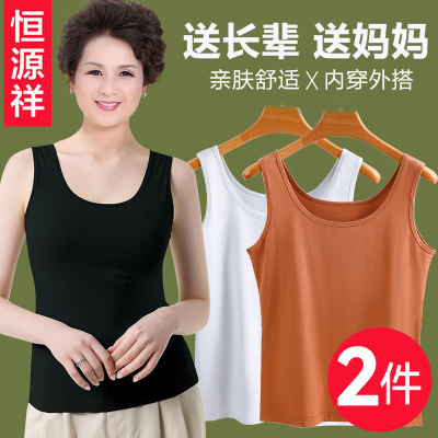 恒源祥妈妈背心女士纯棉夏季薄款汗衫中老年黑白内搭打底吊带内衣