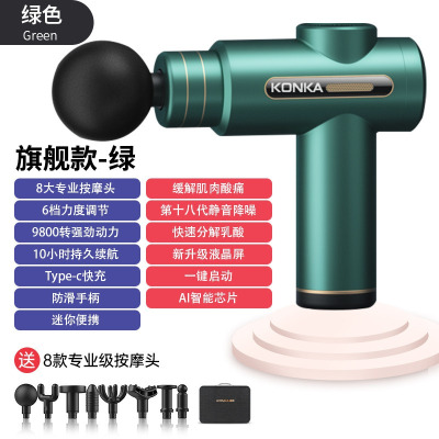康佳迷你筋膜枪家用瑜伽健身肌肉放松按摩器99档充电款按摩枪礼品750-6档8头+绿色+收纳包