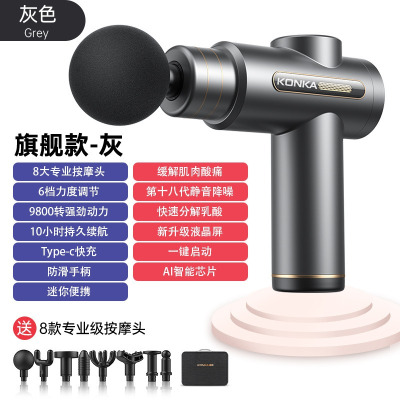 康佳迷你筋膜枪家用瑜伽健身肌肉放松按摩器99档充电款按摩枪礼品750-6档8头+灰色+彩盒