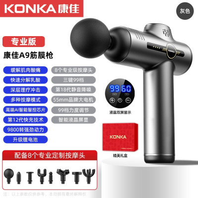 康佳迷你筋膜枪家用瑜伽健身肌肉放松按摩器99档充电款按摩枪礼品A9-99档8头+灰色+彩盒