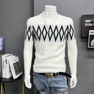 男士毛衣秋冬新款雪尼尔保暖加厚内衣线衣圆领打底针织衫男几何潮