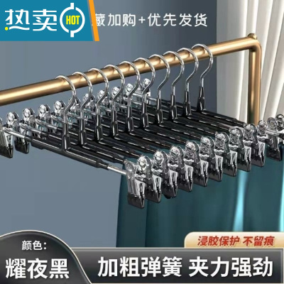 敬平升级防滑裤夹不绣钢加粗裙夹内衣夹可调节强力夹衣架子裤夹子 不锈钢无痕裤架—黑色 10个