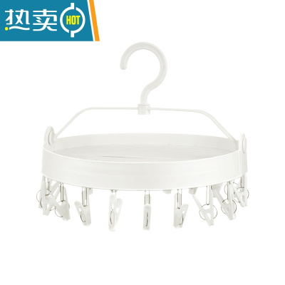 敬平多功能衣架家用多夹子挂袜子架晾袜架裤架裤夹婴儿圆形内衣架 白色 18夹头 1个衣夹