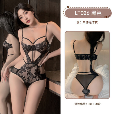 九里晴川LT026新款气质吊带连体衣性感蕾丝透视收腰情趣内衣分销 九里晴川LT026[镂空连体衣-黑] 均码