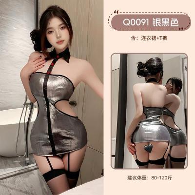 九里晴川情趣内衣网红主播裸肩露腰夜店包臀裙女性感制服辣妹诱惑 九里晴川Q0091[裸肩连衣裙-银黑] 均码