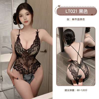 九里晴川蕾丝花边网纱透视连体衣魅力性感纯欲风睡衣诱惑小胸睡衣 九里晴川LT024[暗纹开裆连体衣] 均码