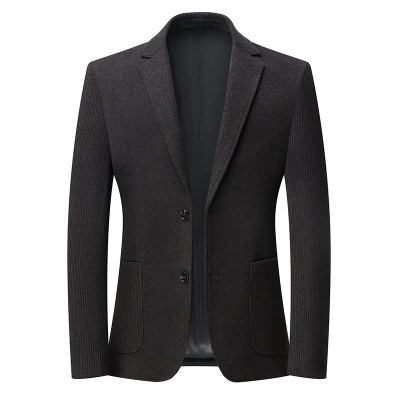 秋冬绒感千鸟格锦纶弹力加厚男士休闲西装青年修身免烫男西服外套