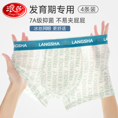 浪莎青少年内裤冰丝夏季薄款网眼发育期学生高中生四角平角裤