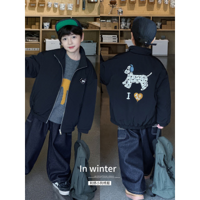 童酷男童冬季新款前后小狗刺绣宝宝夹克外套拉链立领儿童棉服