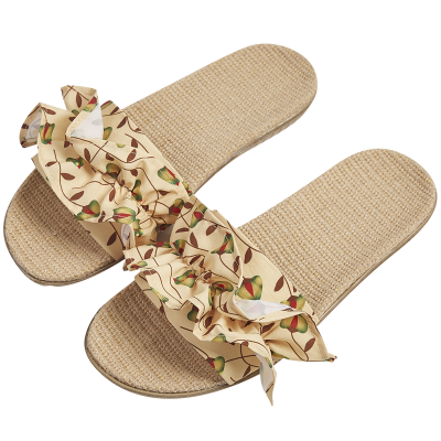 远港2022新款百褶裙亚麻拖鞋女夏季室内家居防滑防臭抗菌四季家用
