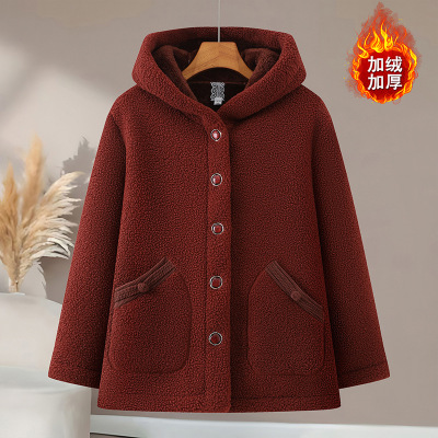 年女装中老年人外套颗粒绒保暖妈妈装新款冬装大衣连帽女加绒
