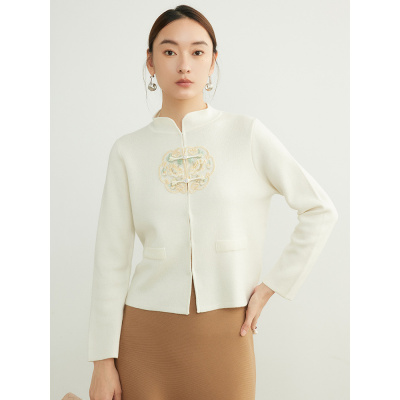 新中式 羊毛外套女装提花盘扣针织开衫25春季新款小个子国风毛衣