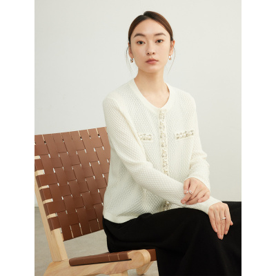 轻奢精致 小香风钉珠针织开衫女装25春季新款时尚单穿羊毛外套女