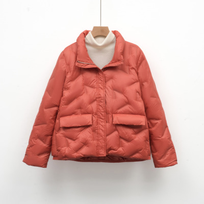 新款简约女式90绒女装立领压胶纯色羽绒服短款大码外套_6731